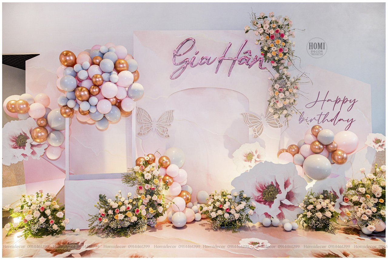 Trang Trí Backdrop Tiệc đề tháng, thôi nôi